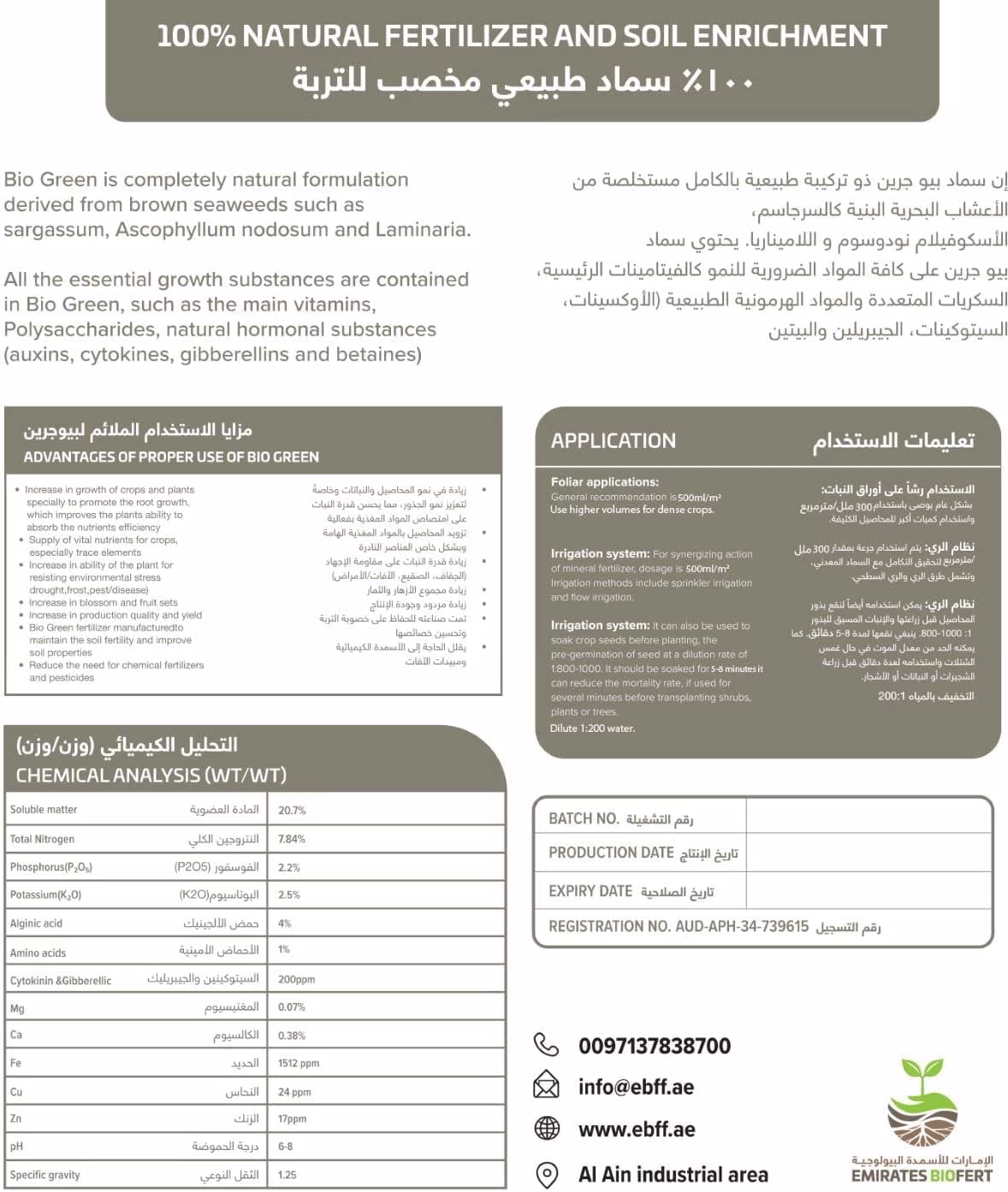 الوصفبيو جرين سائل سماد طبيعي مخصب للتربة